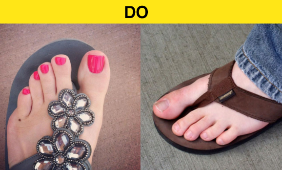 Sometimes, our feet are an afterthought, but they should not be overlooked. If you are wearing open-toe shoes or sandals, you need to make sure that you are well groomed, especially your toes. Treat yourself to a pedicure and make sure that they look kempt and clean. Ladies, have some fun and add some color. Be careful that you choose a color that is not too loud and is still appropriate for work such as soft tones of pinks, reds and purples. Stay away from bright colors like neon orange, green and yellow.